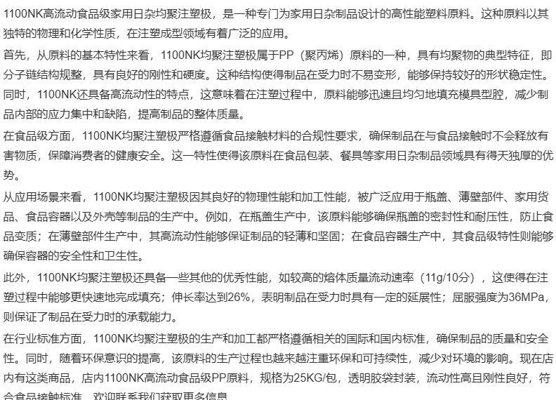 PP泰国石化 1100NK 薄壁产品 瓶盖 食品容器均聚塑胶原材料